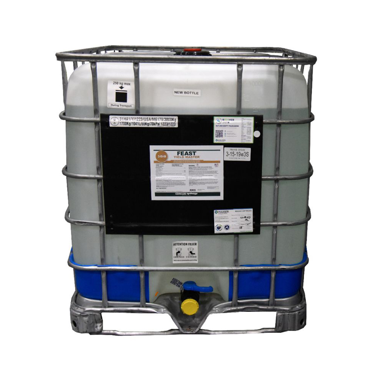 Conklin’s Feast fertilizers start with the highest quality raw materials which produce a superior finished product that out performs the competition. For use a row applied starter fertilizer to get your crops off to a great start and then to follow up with strategically timed foliar applications to maximize your crops genetic potential. It has a low salt index providing 100% orthophosphate, potash and sulfur that is safe for in-row, splitter and 2X2 starter fertilizer placement based upon your soils characteristics and your intended crop. Feast 2-15-19w3S is a special blend of our Feast 3-18-18 and Feast Side-Kick fertilizers conveniently pre-blended for your’ application.